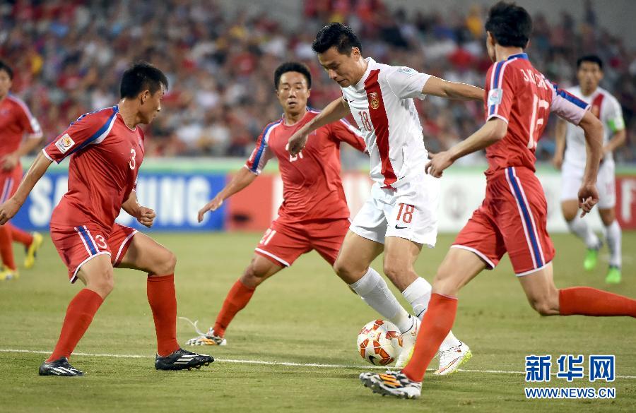 1月18日、ボールを進(jìn)める中國の郜林(右から2番目)