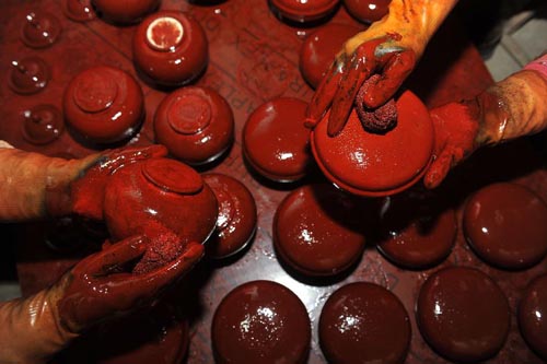 | 寫真は20日、「朱漆坊」の作業(yè)場で漆を塗る作業(yè)員。 |
