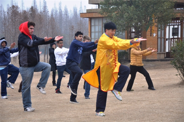 中國カンフーを練習する學生達
