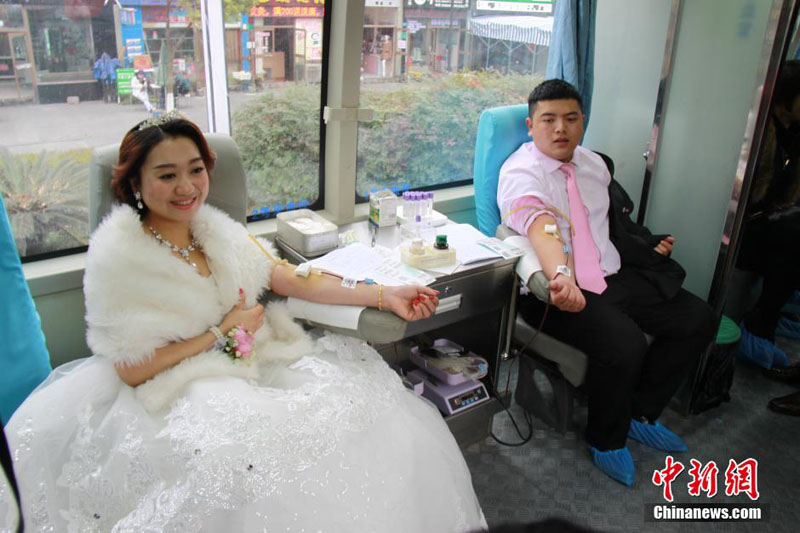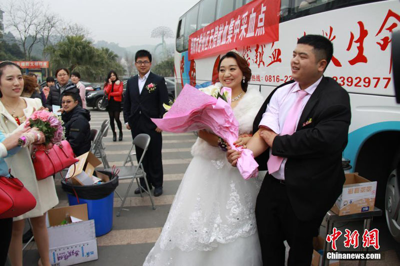 23日、四川省綿陽(yáng)市の無(wú)償獻(xiàn)血所前に、結(jié)婚式用に裝飾された車が靜かに止まった。黒いスーツと白いウェディングドレス姿の新婚カップルが登場(chǎng)し、「結(jié)婚の記念に」と手をつないで獻(xiàn)血に行った。現(xiàn)場(chǎng)では大きな拍手が湧き起こり、この新婚カップルを撮影するカメラのシャッター音が周囲に響いた。中國(guó)新聞網(wǎng)が伝えた。(編集YH)