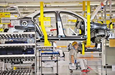 | 一汽フォルクスワーゲン成都工場(chǎng)の生産ラインで作業(yè)中の工員。 |