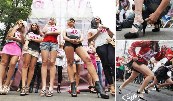 2009年、ロシアの首都モスクワのあるファッション誌はハイヒール競走という変わったイベントを開催した。參加者は9センチ以上のハイヒールを履くことが條件で、最高16センチのハイヒールを履いて參加する人もいた。70人の女性が80メートルの距離を競走し、優(yōu)勝者は10萬ルーブルの賞金を受け取った。