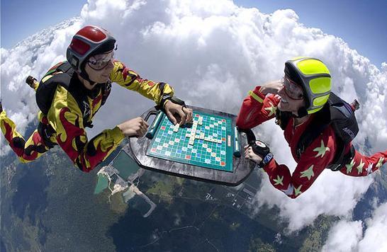 ボードゲームのスクラブルの誕生60周年を記念し、米國(guó)の2人のパラシューターは高さ4000メートルの上空でスクラブル対戦をした。