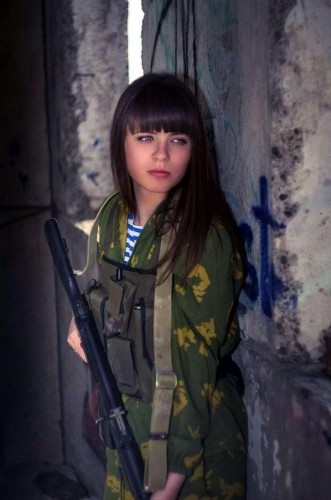 軍服姿に銃を擔(dān)いで廃墟でコスプレを披露するロシアの美少女 (15)