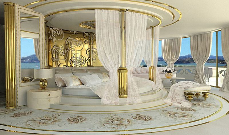 この客船の名は「La Belle」。長さ約80メートルで、6部屋のスイートルームを持ち、乗客定員は12人。ベルサーニ氏は船內(nèi)のデザインについて、「ロマンティックで溫かみのある居住空間を目指した」としている。全ての部屋はスタイリッシュかつ女性らしい要素にあふれ、アイボリー、ホワイト、ゴールドの色合いが美しくマッチしている。