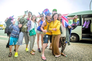 現(xiàn)地人との觸れ合いを楽しむ中國人観光客。