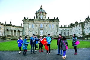 1月31日、カースル?ハワードを見(jiàn)學(xué)する中國(guó)人観光客。人気歌手の周傑倫(ジェイ?チョウ)がここで結(jié)婚式を挙げたため、ヨーロッパの古城が、中國(guó)人観光客の間で人気となっている。