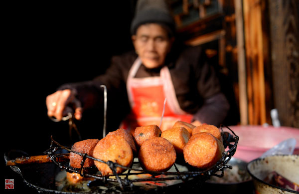 春節(jié)が近づくと「油餡」の香りが湖北省恩施土家族苗族自治州宣恩県の市場には漂う。年越しにつきもののこの土家族の軽食は、人々に人気だ。