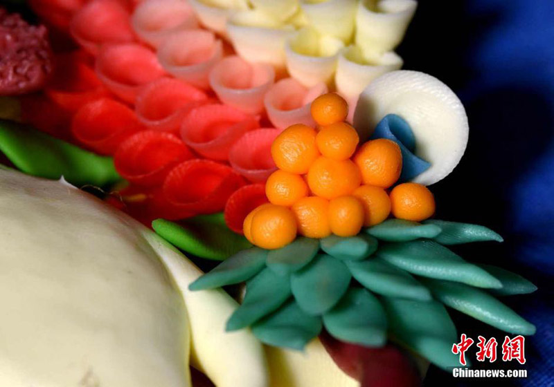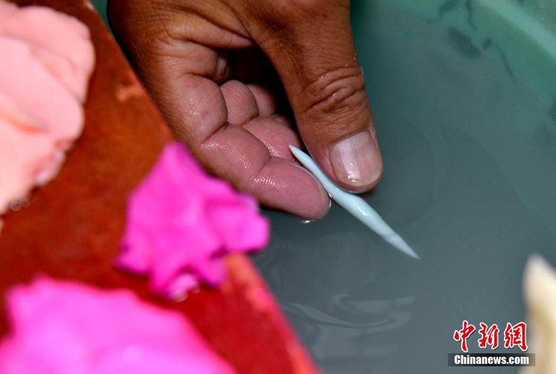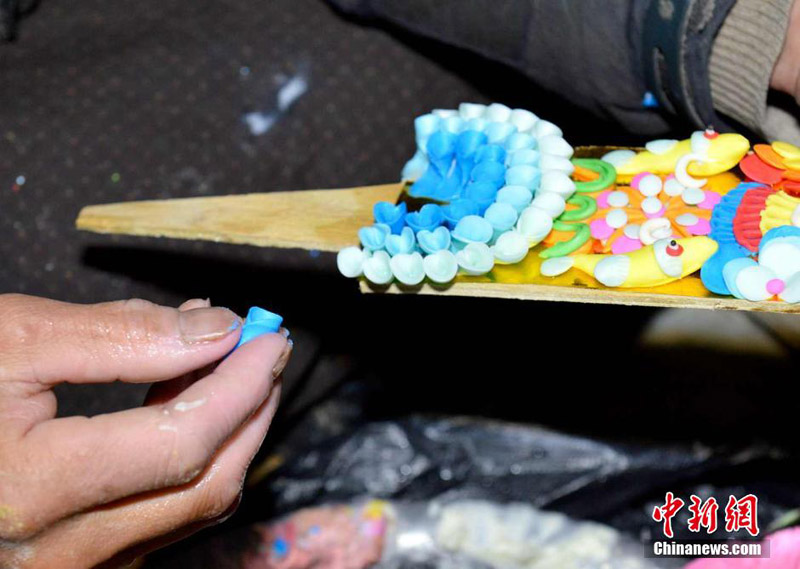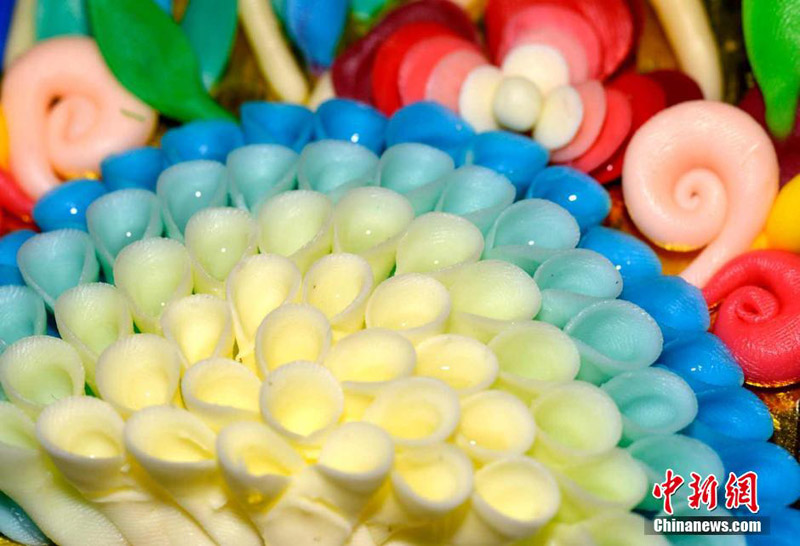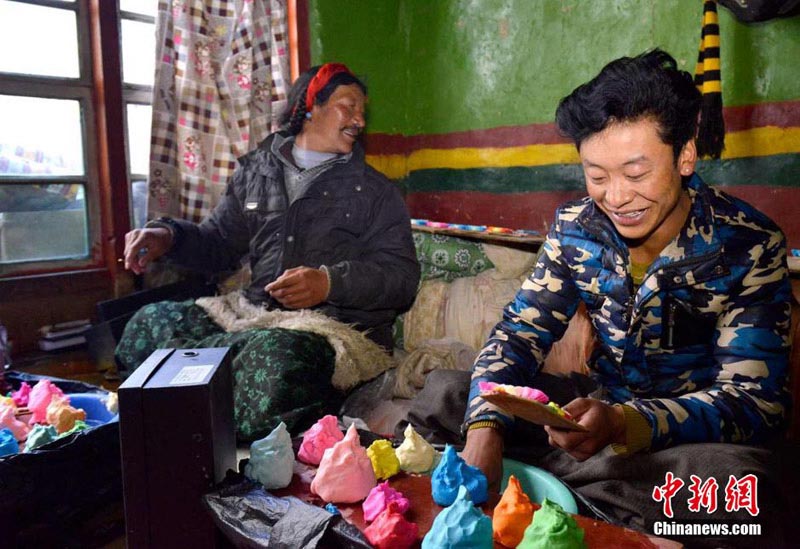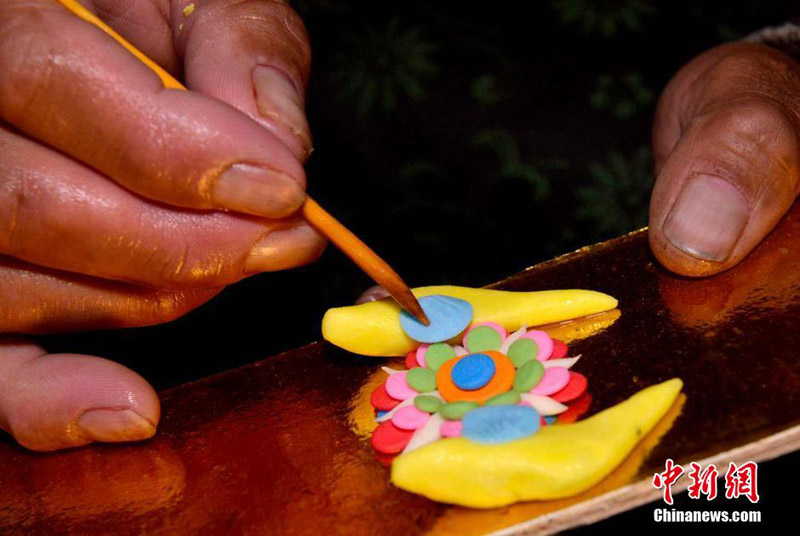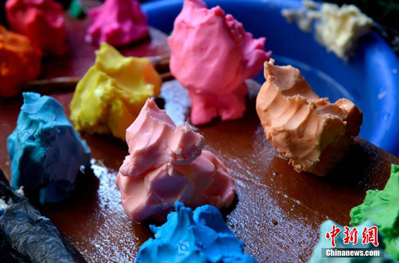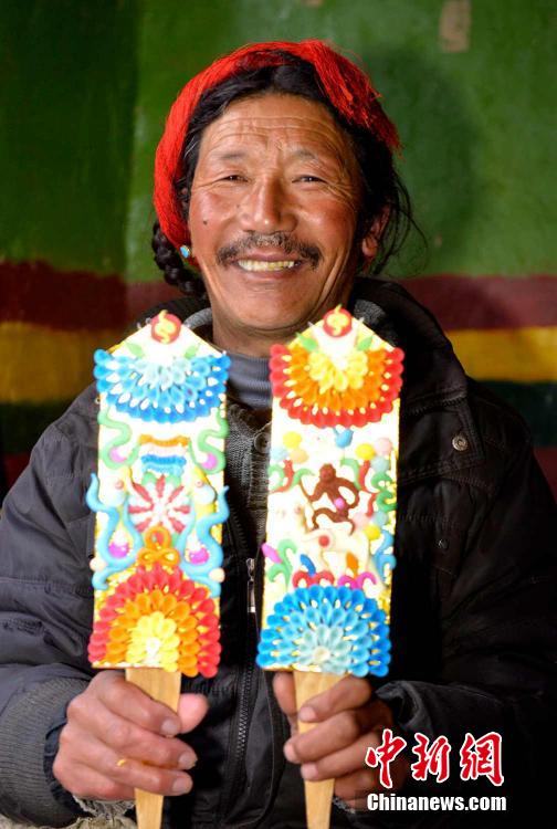 チベット暦の未年を目前に控え、拉薩(ラサ)の街角では年越しムードが漂っている。「孜扎」(切瑪盒內(nèi)にお供えされる酥油花)は拉薩の年越し用品市場(chǎng)で好調(diào)な売れ行きを見(jiàn)せている。酥油花(チベットの僧侶が牛や羊のバター(酥油)を用いて作った仏への供物)はチベットのボン教で作られたことが始まりとされ、「十五貢品」と呼ばれた。職人たちはまずバターに様々な鉱物の顔料を入れて生地を作り、さらに手作業(yè)で仏像や人物、花や樹(shù)木、動(dòng)物などを形作る。中國(guó)新聞網(wǎng)が伝えた。(編集YH)