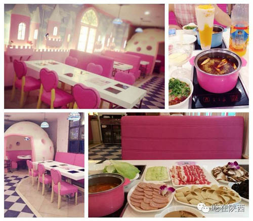 店內(nèi)はとにかく見えるものすべてがピンク色。ハローキティとドラえもんがテーマの火鍋レストラン。店內(nèi)は「kawaii」萌える女の子たちばかりで、ドラえもんは女の子に付き添ってやってきた男の子が気まずくないようにと補(bǔ)ったキャラクターにさえ感じる。実は周到な工夫が凝らされた店內(nèi)、ご來店されればそのすごさがわかります。(編集HT)