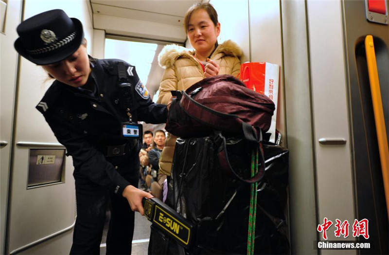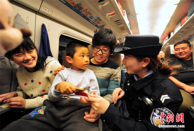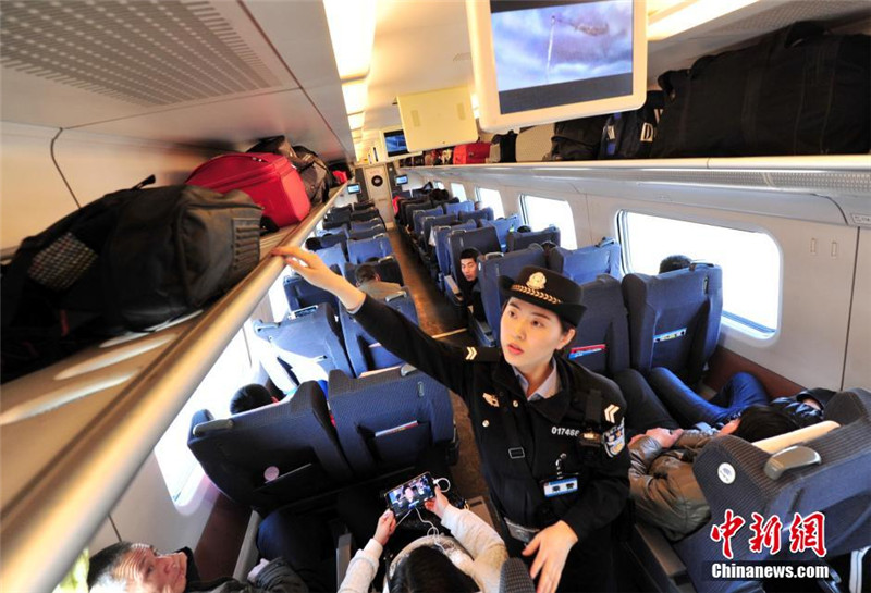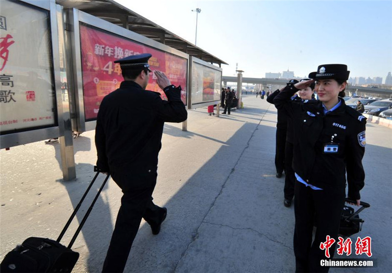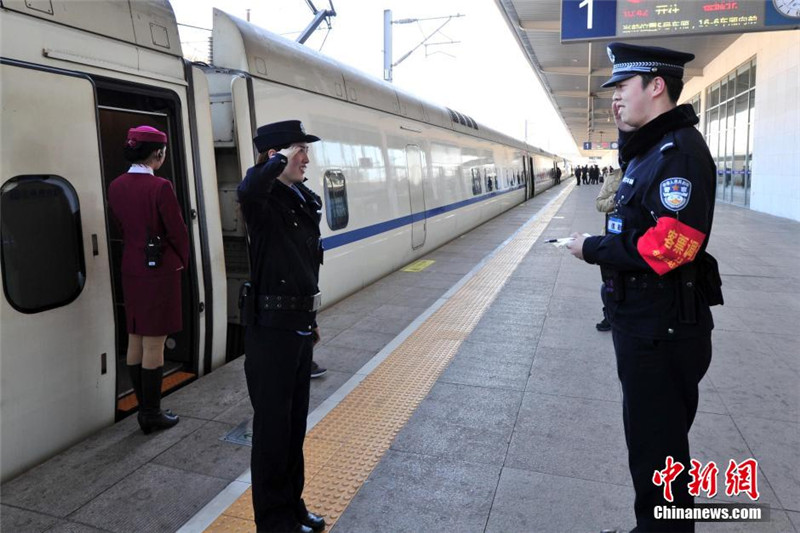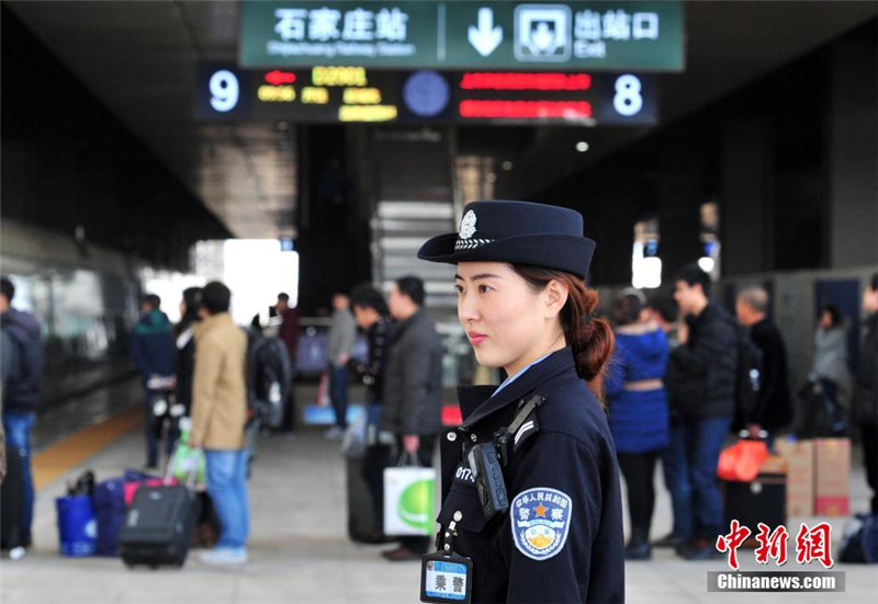 「春運」(春節(jié)<舊正月>の帰省?U ターンラッシュに伴う特別輸送體制)の7日目にあたる10日、北京鉄道公安局石家荘乘警支隊の「90後」(1990年代生まれ)の女性鉄道警察官、秦彤さんは準備を整え、列車に乗るのを待っていた。江蘇省出身の彼女は大學を卒業(yè)して警察官の試験に通過し、鉄道警察に入ったばかりで、現(xiàn)在は北京西―運城北のD2001便に乗り組んでいる。多くの男性鉄道警察官と同じ責任を負う彼女は、列車の安全検査や巡視、逃走犯の捜査といった任務(wù)を擔っている。今年は秦彤さんが鉄道警察になってから初めての春運となるため、これまで家を離れたことのない彼女にとって、職場で迎える初めての春節(jié)となる。中國新聞網(wǎng)が伝えた。(編集YH)