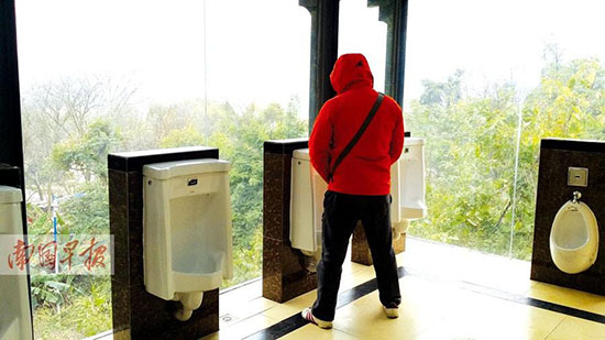 他の地方から訪れた観光客の呉さんは透明ガラス張りのトイレから出てきた後、「初めて透明ガラス張りのトイレを見た。悪くないと思う。トイレの中は光が差し込んで明るいし、ガラスの外の風(fēng)景は美しい」と語った。プライバシー侵害の心配がないかと聞くと、呉さんは、「便器が設(shè)置されている部分に壁があり、前に近づけば、外からは見えない。プライバシーが侵害される心配はない」と説明してくれた。