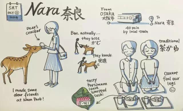 この日は朝早くに大阪のローカル電車に乗って奈良へ向かった。奈良の鹿は人と交流することが好きだ。駅を出るとすぐに鹿のいくつかの群れが鹿せんべいを売っている露店の前で道行く人を観察している姿が目に入った。ただし、奈良の鹿は野生動物なので、人に対して完全に友好的なわけではなく、服に噛みついたり、人を蹴ったり、人に攻撃したりする光景も頻繁に見られた。