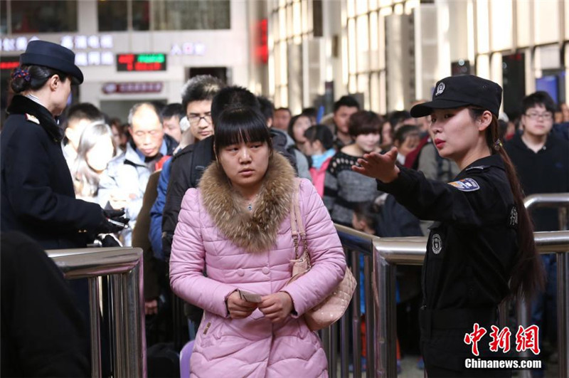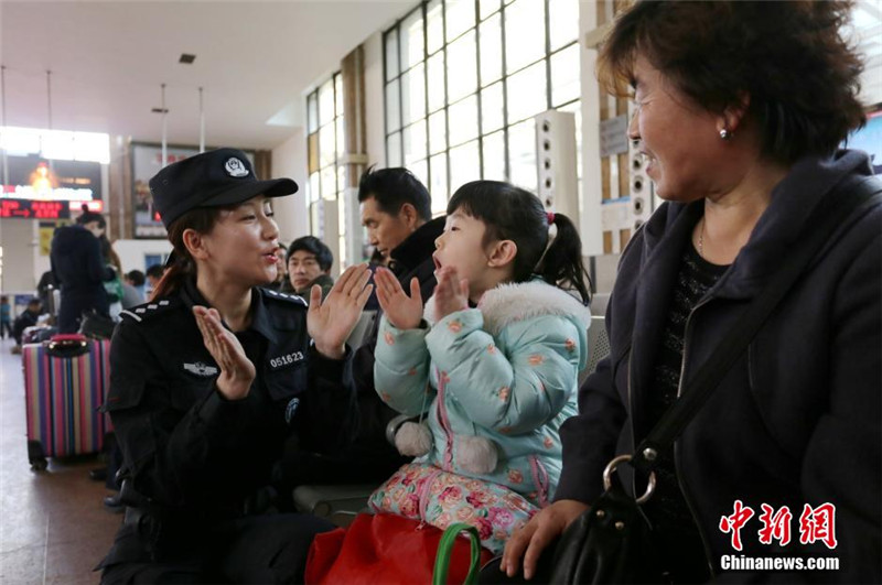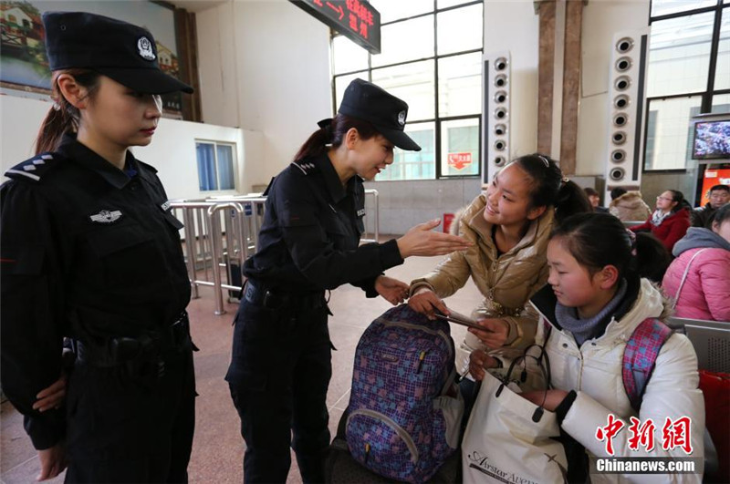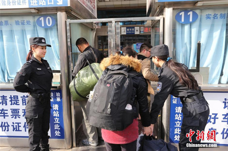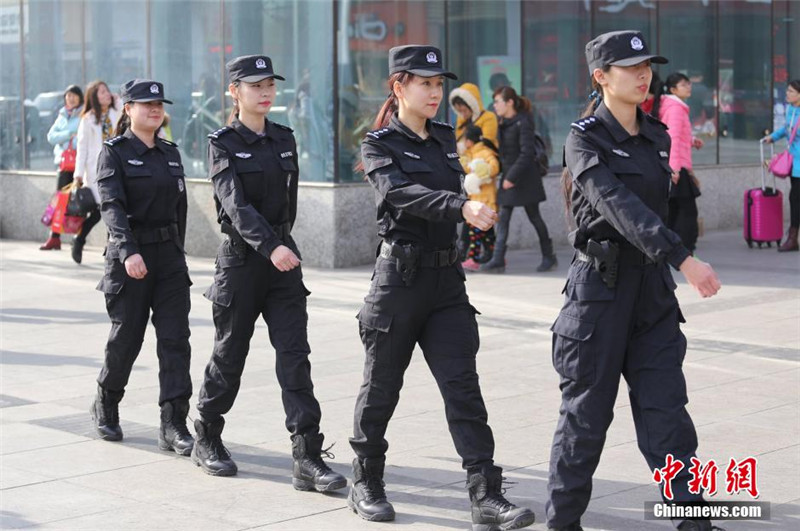 「春運」(春節(jié)<舊正月>の帰省?Uターンラッシュに伴う特別輸送體制)期間中、中原地域の鉄道の大動脈は「春運」の安全保証の主な舞臺となる。ここで活躍する女子特殊警察隊は鄭州鉄道公安処に所屬する?!?0後」(1980年代生まれ)や「90後」(同90年代生まれ)が中心の彼女たちのうち、最年長は34歳、最年少は22歳だ。若々しく美しい彼女たちの主な任務は突発的な事件への対処や、駅の治安維持?秩序維持、利用客の支援だ。この女子特殊警察隊は「春運」期間の名物となっている。中國新聞網(wǎng)が伝えた。(編集YH)