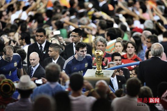 鮑泰良氏の作品「最後の試合」。マラカナン?スタジアムで、W杯カップを見送るアルゼンチンのリオネル?メッシ選手。