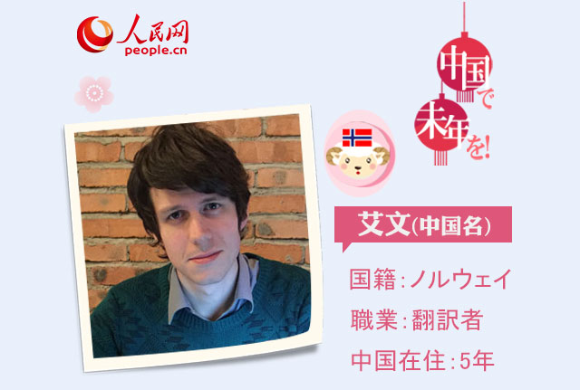 流暢な中國語と日本語を操るノルウェイの青年?艾文(中國名)さんは、伝統(tǒng)的な祭日としては、中國の春節(jié)の方が、日本の新年よりも西洋風(fēng)で、ますます多くの人が旅行に行くことを選択しているという。