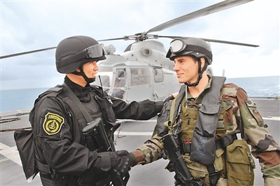 中國海軍第18次護送艦隊は現(xiàn)地時間13日、フランス海軍のミサイルフリゲートとトゥーロン港沖で不測の遭遇、通信、臨検?拿捕、負傷者の治療?搬送などの合同訓(xùn)練を?qū)g施した。(編集NA)