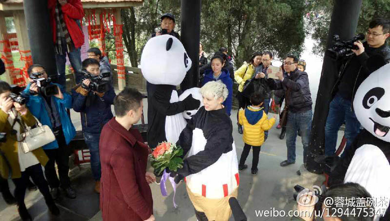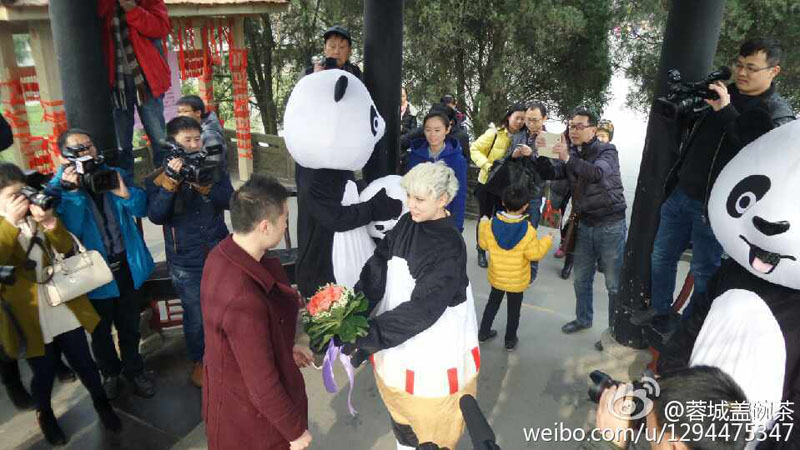 バレンタインデーの14日、四川省都江堰で、26歳のウクライナ人美女が「國寶」のパンダに扮して、交際1年になる30歳の成都の男性にプロポーズするというロマンチックな場面が見られた。このロマンスはウクライナ人のSashaさんが1年前に観光に來たことがきっかけ?!赴遵Rの王子」とのめぐり合いを夢(mèng)見ていた彼女は、帰路の高速鉄道の車內(nèi)で大斌さんと巡り會(huì)って戀に落ちた。華西都市報(bào)が伝えた。(編集YH)
