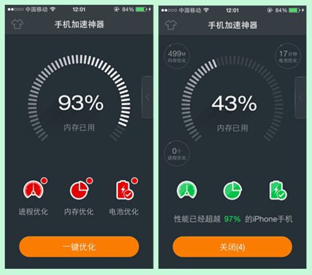 この「加速」と呼ばれるアプリは、App Storeで初のiPhoneの加速アプリで、主にメモリを削除することで攜帯電話の動作を速くしてくれる。