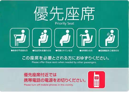 電車內(nèi)には特定の優(yōu)先座席があるが、座ってもいい。ただし、近くに高齢者や老人、妊婦、身體が不自由な人がいれば、必ず席を譲らなければならない。