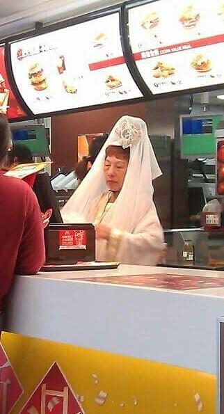 臺灣のマクドナルド店員、「観音様」に扮してサービス提供 (2)