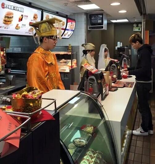 臺灣のマクドナルド店員、「観音様」に扮してサービス提供 (3)