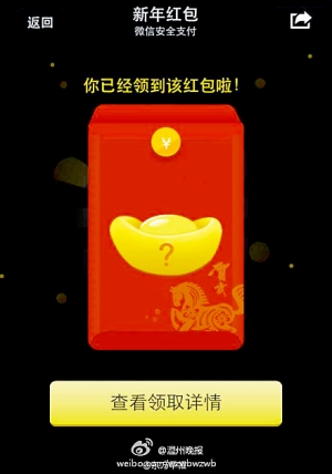「オンラインお年玉」は「少數(shù)派による試行」から「全國民の狂喜」となり、未年春節(jié)の「顔」になった。これに対する評価はまちまちだが、「オンラインお年玉」は爆発的ブームとなった。微信(WeChat)と支付寶(アリペイ)の公式統(tǒng)計データによると、2015年舊暦大晦日、微信は計10億1千萬件のお年玉を出した。この數(shù)字は、2014年の200倍に相當(dāng)する。QQの出したお年玉は計6億3700萬件、1億5400萬人がお年玉爭奪戦に參戦した。アリペイのお年玉給付件數(shù)は2億4千萬件、総額は40億元(約760億円)に達(dá)した。