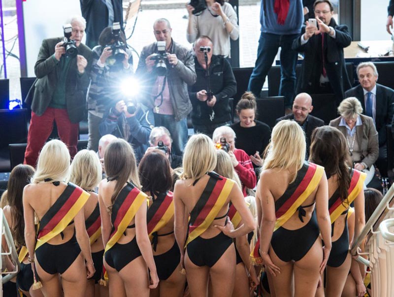「ミス?ドイツ」コンテストは1927年に始まり、參加者の數(shù)は毎年平均4千人を超え、この數(shù)は15年近くの間増加を続けている。今年決勝戦に參加する24人は専門家による?yún)棨筏彇摔蚪Uて5115人の中から選抜された選手だ。(編集YH)