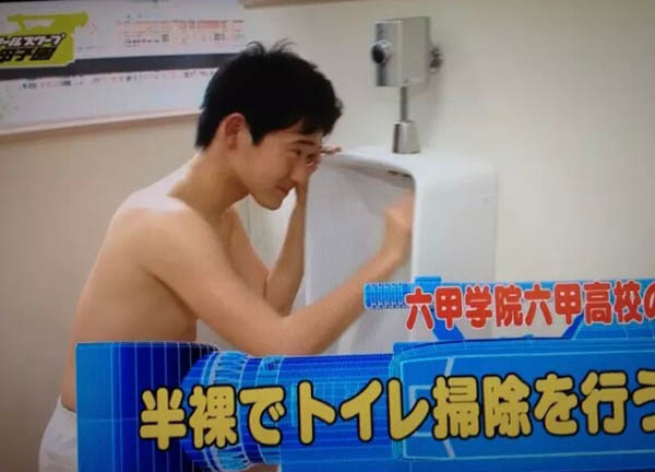 兵庫県六甲中學?六甲高等學校は進學率の高さで有名な私立男子校だ。同校の學生には厳しい要求があり、毎日どんな天候にも関わらず、校庭を上半身裸で10分走り、その後當番制でトイレ掃除もしなければならない。卒業(yè)時、最後に學校のためにすることが、トイレをきれいに掃除することだ。清潔さと伝統(tǒng)を後輩に受け継いでいくのだ。