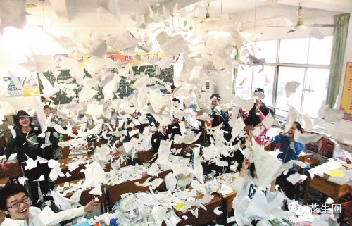 中國 卒業(yè)試験の終了後に教室中を舞う參考書の風(fēng)景