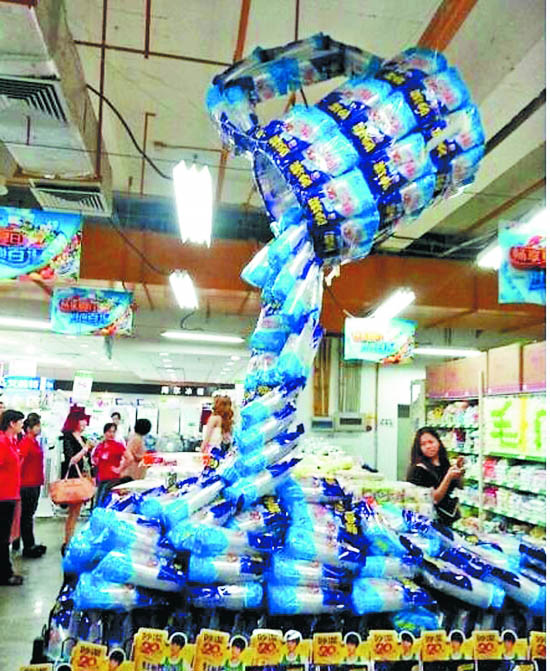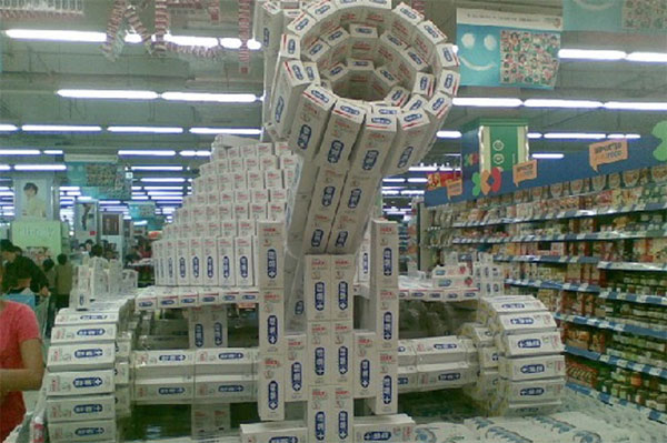 各地のスーパーの売り場ではお客の目を捉えるために、様々な商品が店員の手による「変裝」を経て、その獨特さが注目されると同時に、商品への親しみやすさも生んでいる。中には思わず笑ってしまうような陳列ディスプレイもある。(編集YH)