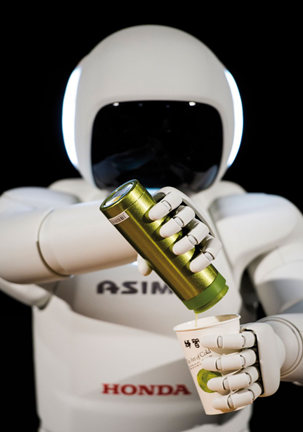 ロボット「アシモ」は正確な動(dòng)作でお客にお茶をいれることができる。