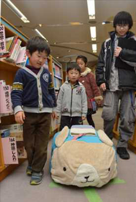 図書館ガイドの日を前に、栃木県小山高等専門學校では図書館ガイド専門ロボットが來館者にサービスを提供していた。