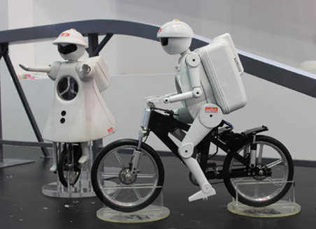 自転車に乗ることのできるこのロボットは「ムラタセイサク君 」という名前で、車輪と幅の変わらないぐらいの道の斜面を安定的に自転車で走ることができる。途中で障害物を見つけた場合、ロボットは正確に停車やバックすることができる。