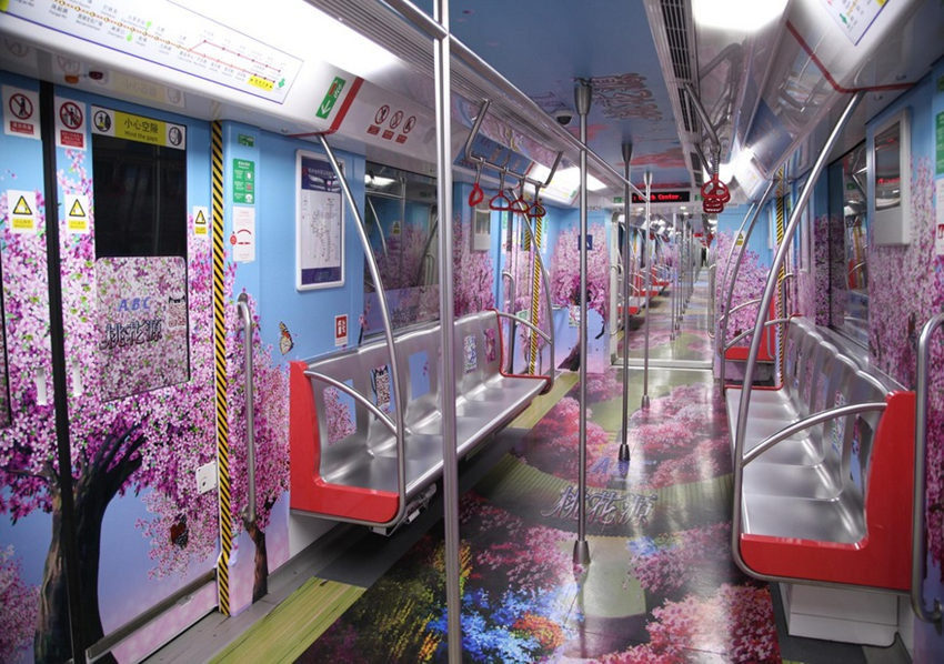 杭州地下鉄の車両でこのほど、伝説の桃源郷が再現(xiàn)された。3Dの特殊効果により、美しい桃源郷にいるような錯(cuò)覚を作り出す。ネットでは、「婚活するなら杭州の地下鉄に乗ればいい」との書き込みがされた。