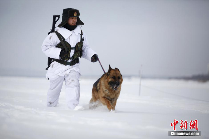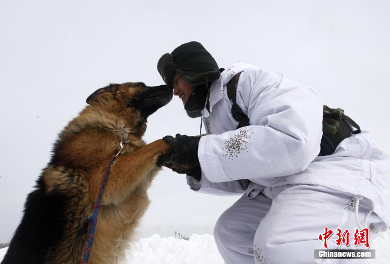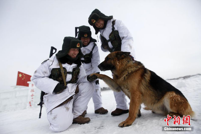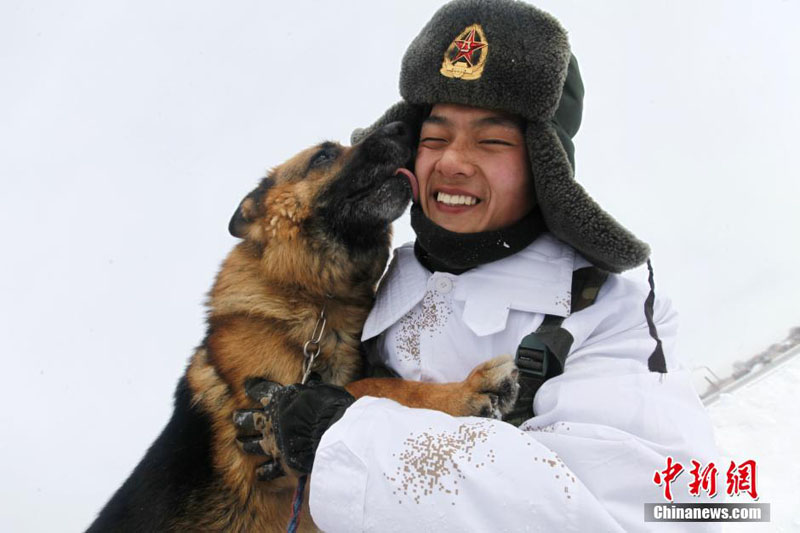 北緯50度の國(guó)境線近くに位置する「黒河好八連」の哨戒兵は1日、氷點(diǎn)下20℃近い厳寒の中で國(guó)境地域を巡回していた。巡回の途中で休憩する時(shí)、すでに八連で8年にわたり服役している、ひげも白くなった高齢の「老兵」軍用犬、小竜が自ら足を兵士の手にかけてねだるため、兵士たちは順番に犬の足を暖めてやる。兵士たちが足を暖めてやると、小竜は舌で兵士たちの額や頬を舐めたり、鼻面を兵士たちの耳元に押し付けたりして親愛の情を示し、「戦友」どうしが語(yǔ)り合うような様子を見せている。中國(guó)新聞網(wǎng)が伝えた。(編集YH)