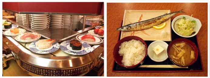 回転壽司や定食も悪くない選択だ。特に「回転壽司」は、壽司を安く食べるのに最も適した方法だ?;剀瀴鬯镜辘摔?種類の壽司が提供されている。一つは、均一価格で、もう一つは、お皿の色によって価格が異なる。また、日本の多くのレストランのランチは、夜よりも安い。夜だと平均3000円ぐらいかかるレストランでも、お晝には特別ランチセットを提供しており、中には1000円以下のものもあり、コストパフォーマンスが非常に高い。