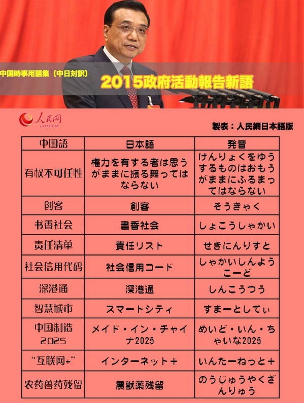 第二回の內(nèi)容はこちらへ>>中國時事用語集(中日対訳) 2015政府活動報告新語 特集(二)