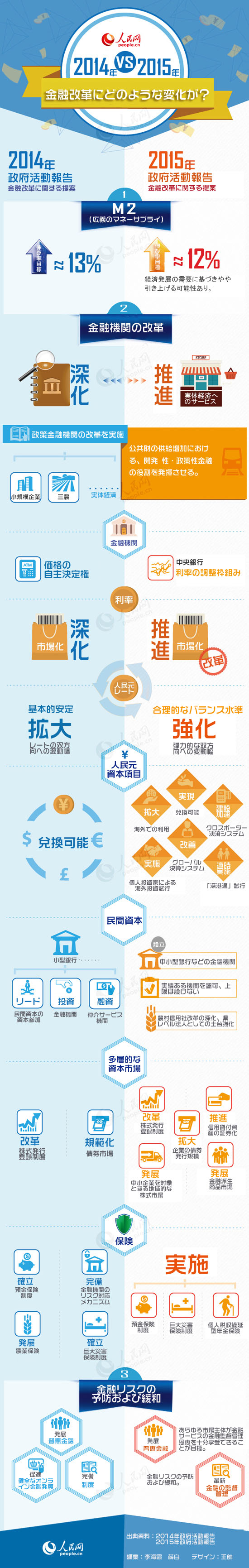 第12期全國(guó)人民代表大會(huì)(全人代)第3回會(huì)議が5日午前9時(shí)より人民大會(huì)堂で開幕した。李克強(qiáng)総理が國(guó)務(wù)院を代表して政府活動(dòng)報(bào)告を行った。今年の政府活動(dòng)報(bào)告の中で金融改革に関する提案は2014年と比べ、どのような変化があるか。ひと目でわかる図にまとめた。(編集KM?JZ)