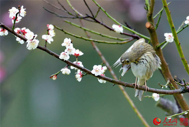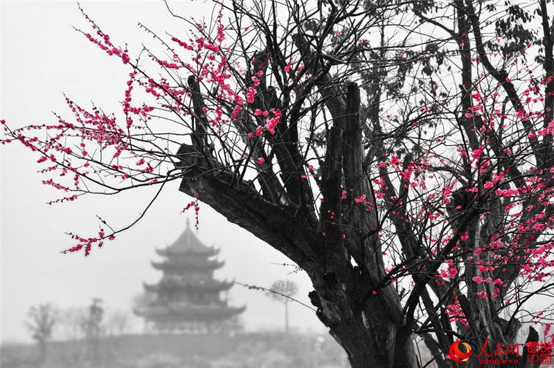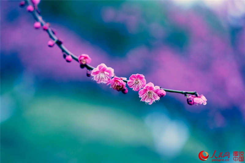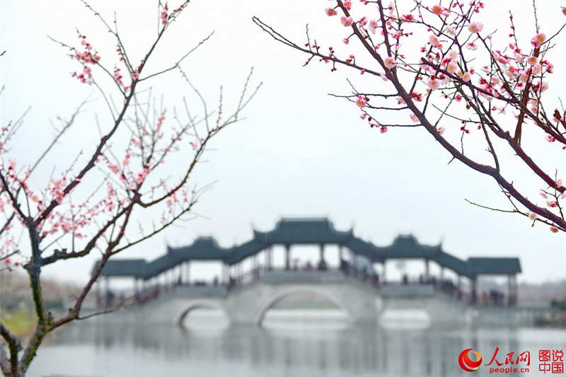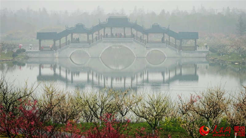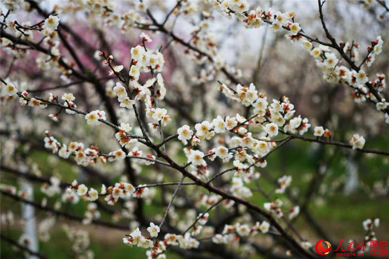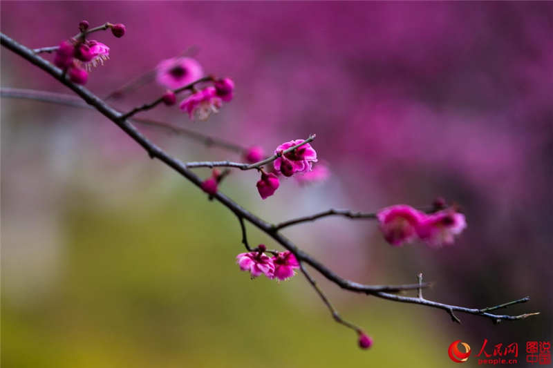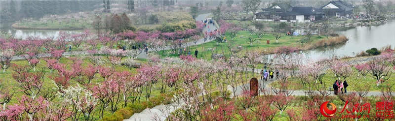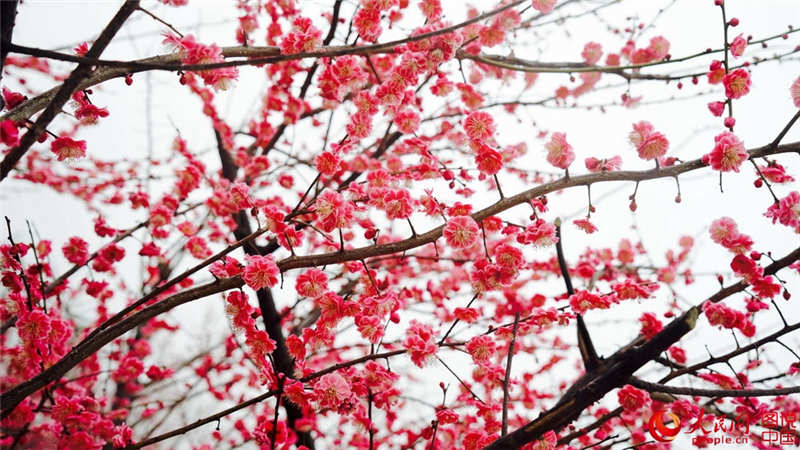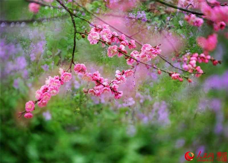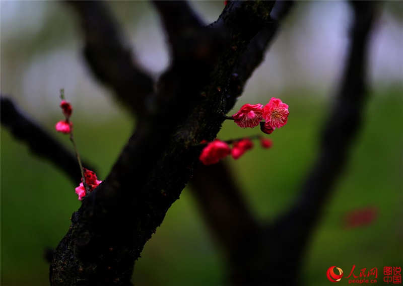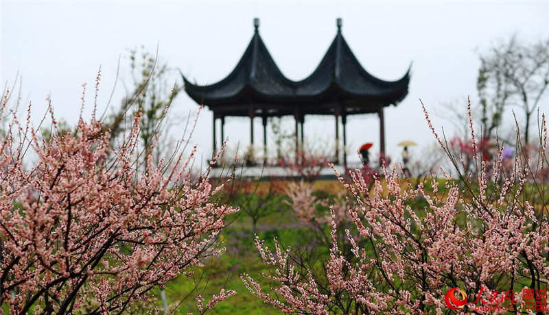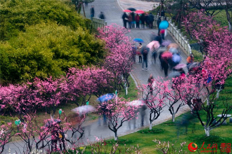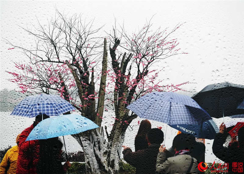 春の雨が降る中、梅の花を撮影するのも獨特の趣がある。雨に煙る江南地域の芳しい花園では、花だけでなく、雨の中花を見に訪れた様々な人の姿も見ることができる。(編集YH)