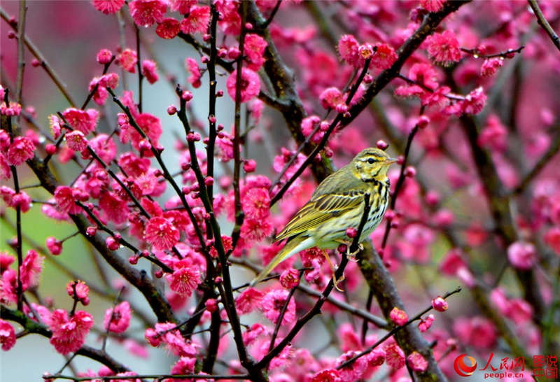 上海海灣國家森林公園內(nèi)部には季節(jié)に応じて公開される梅園がある。4萬2千株近く、126種類の梅や、梅の盆栽100鉢以上があり、梅と竹林、針葉樹からなる美しい景観を見せている。人民網(wǎng)が伝えた。