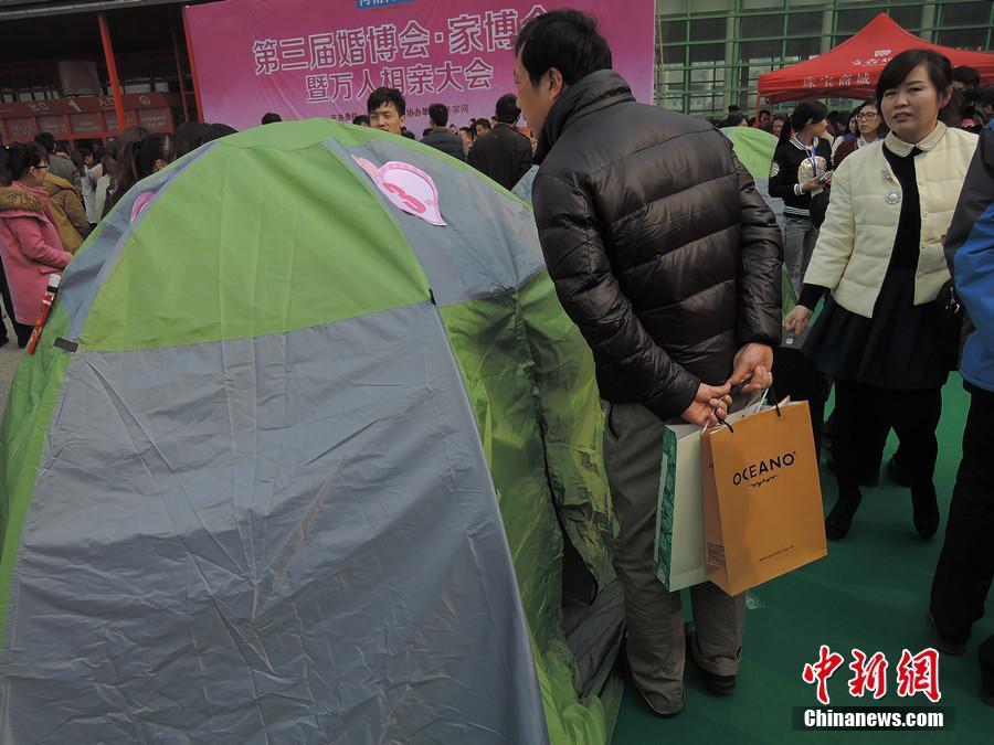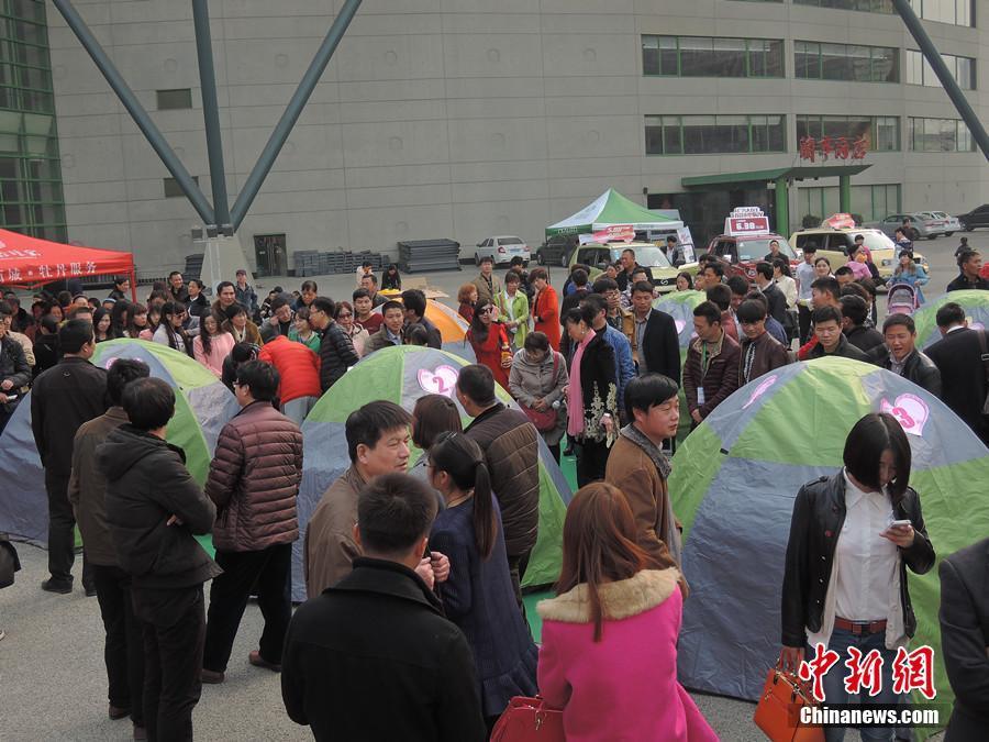 河南省鄭州市の如意湖畔では14日、春の風(fēng)の下でテントを利用した獨特のお見合いイベントが行われ、多くの獨身男女が參加した。會場にはテントが8つ設(shè)置され、仮面をつけた獨身女性が中に座り、女性のプロフィールをテントの外に貼り、興味のある男性はテントで女性と8分間交流することができる。新奇なお見合い方法に男性は興味深そうに「覗き見」をし、戀人探しにいそしんだ。中國新聞網(wǎng)が伝えた。(編集YH)