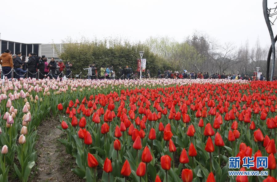 寫真は15日、大寧霊石公園でチューリップの花を見る観光客。2015年新湖チューリップ花博覧會(huì)の開幕式が同日、上海市閘北區(qū)大寧霊石公園で行われた。100萬株近くの様々な種類のチューリップからなる大規(guī)模な12の花畑が68萬平方メートルの公園內(nèi)に配置されている。また同園にはオオアラセイトウや虞美人草、菜の花なども植えられている。新華網(wǎng)が伝えた。(編集YH)