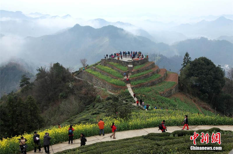 安徽省黃山市歙県霞坑鎮(zhèn)石潭村では15日、雨の後に雲(yún)海が出現(xiàn)した。撮影愛好家の間で「最も美しい村」と呼ばれている石潭の菜の花畑では、雨の後に一面の雲(yún)海が広がることが一般的で、毎週末には多くの人が訪れる。金色の菜の花に真っ白な雲(yún)海、色鮮やかな服裝が一體となり、水彩畫のような風(fēng)景を見せている。中國(guó)新聞網(wǎng)が伝えた。(編集YH)l