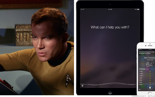 自然な音聲でパソコンと対話し、反応を得る。これはスター?トレックの最大の技術(shù)的進(jìn)展だ。我々はまだこの技術(shù)を?qū)g現(xiàn)できていないが、Siri、Google Now、Cortanaといったアプリは、この目標(biāo)に近づいている。これらのアプリはさらに、プログラムによってユーモア感を演出しようとしている。これはエンタープライズのパソコンでさえ把握できなかった技術(shù)だ。