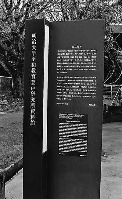 平和教育登戸研究所資料館の設(shè)立趣旨を記した碑