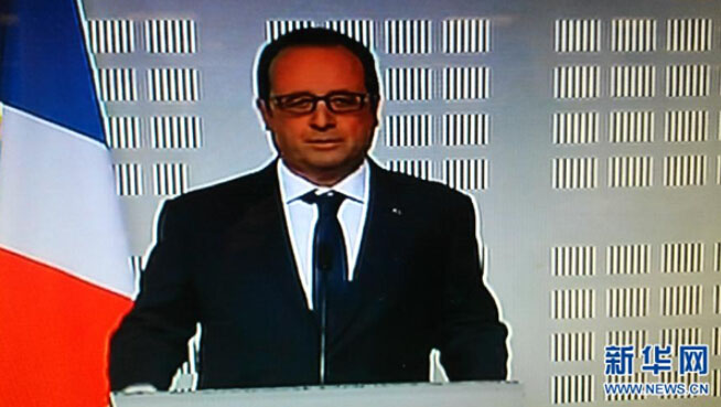 | 24日、パリで事故について會見を行う仏オランド大統(tǒng)領(lǐng)(動畫のキャプチャ畫像) |