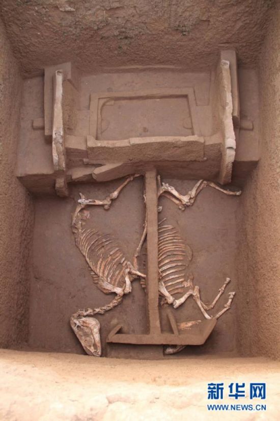陝西省涇陽県で発掘された、西周の墓群の馬車副葬坑。