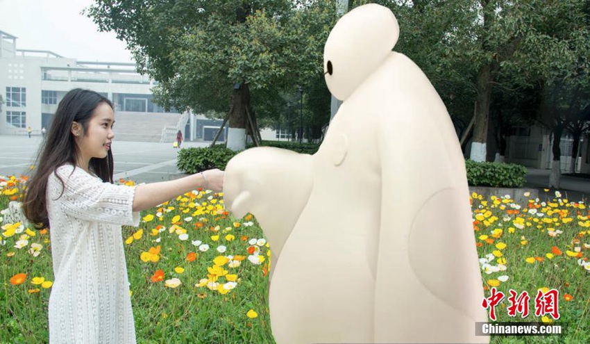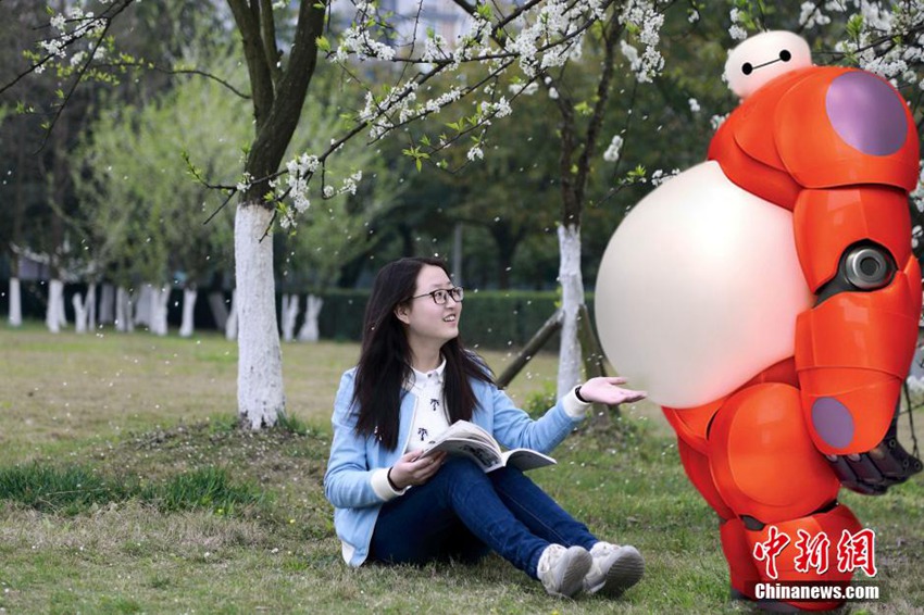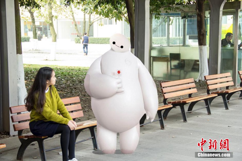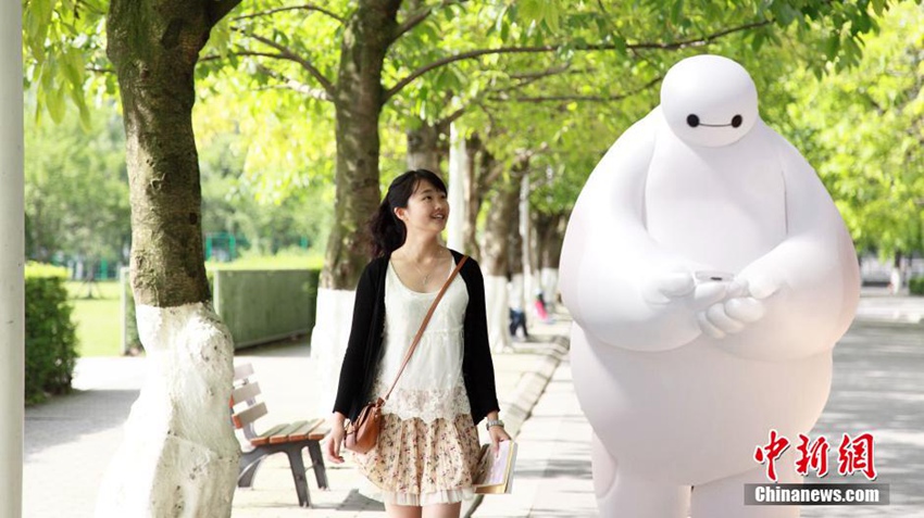 「ハイ!ぼくはベイマックス、あなたの健康をサポートするよ」。こんな言葉をかけてくれる、白くて丸々した可愛らしいケアロボット?ベイマックスは、中國の女子大生達の間で最近人気者になった。四川大學錦江學院の學生達はおもしろがって、モデルの女の子とベイマックスを「共演」させ、教室で隣の席に座るベイマックス、スクールバスの長いすに一緒に座るベイマックス、ほころび始めた花の下にたたずむベイマックス、校舎の廊下を一緒に歩くベイマックスなどの畫像を作成した。ベイマックスがいつもやさしく寄り添ってくれるこの畫像には心溫まる癒し効果があると評判になり、公開されるやいなや微信(WeChat)のモーメンツで転送が繰り返され、あっという間に拡散した。中國新聞網(wǎng)が伝えた。(編集KS)
