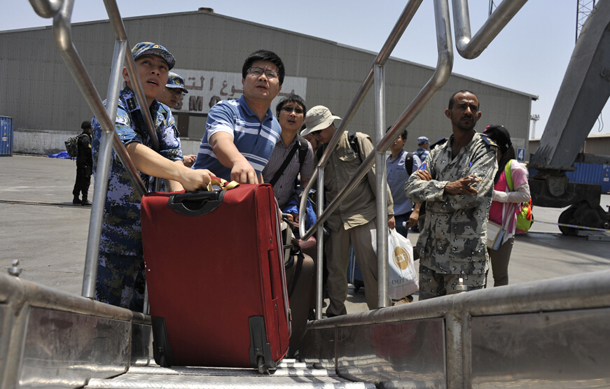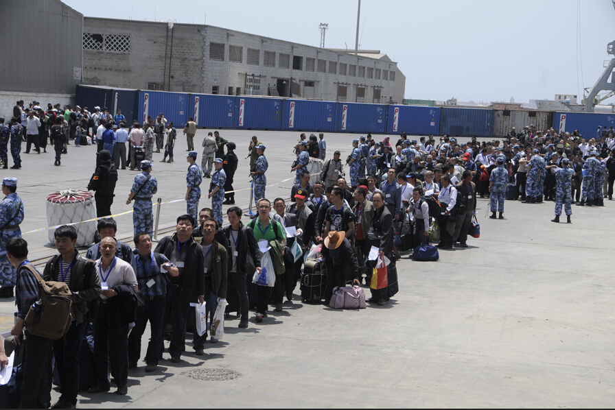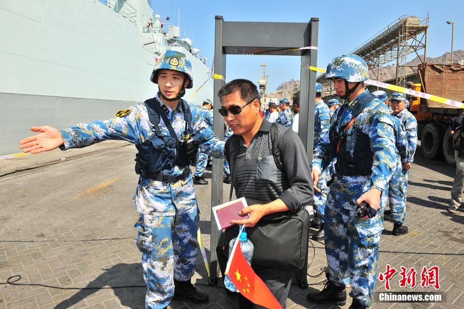 現(xiàn)地時間29日晝ごろ、中國海軍第19次護(hù)送艦隊(duì)の「臨沂」がイエメン?アデン港に到著。在アデン中國総領(lǐng)事館の積極的な協(xié)力の下、女性7人、子ども1人を含む中國國民122人を退避させた。中國企業(yè)で働くエジプト人とルーマニア人の技術(shù)者2人も同艦で退避した。(編集NA)